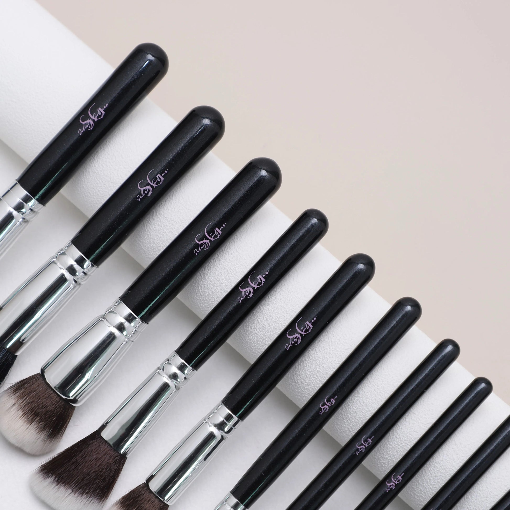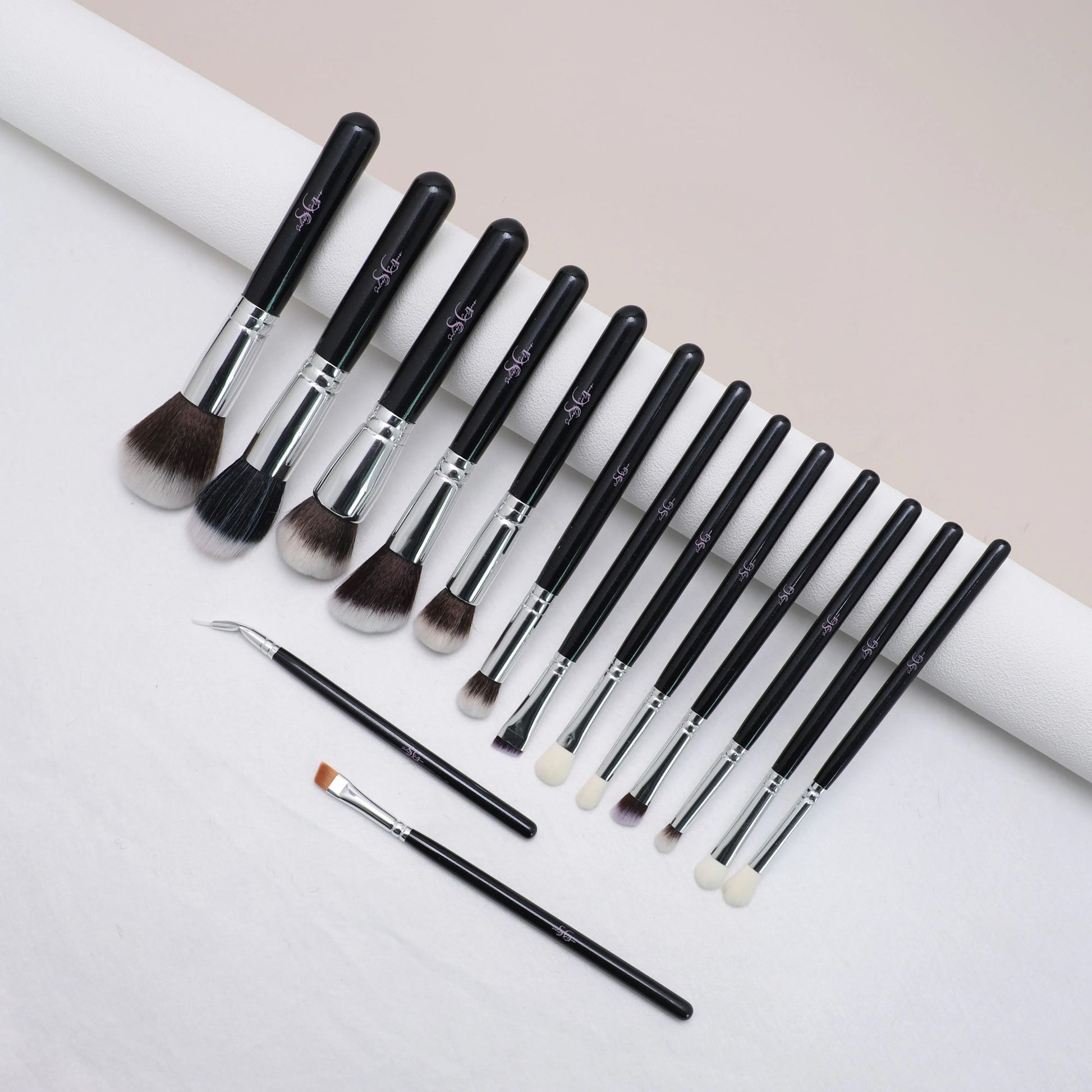 The sleek black handles and durable silver ferrules provide comfort, control, and a luxury finish.